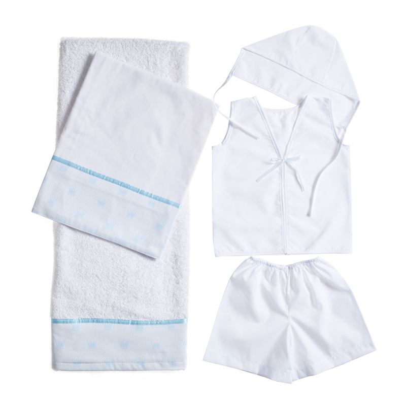 Λαδόπανα σετ για αγόρι σε λευκό χρώμα με γαλάζιες κορώνες. Παράδοση σε 5-10 εργάσιμες μέρες.