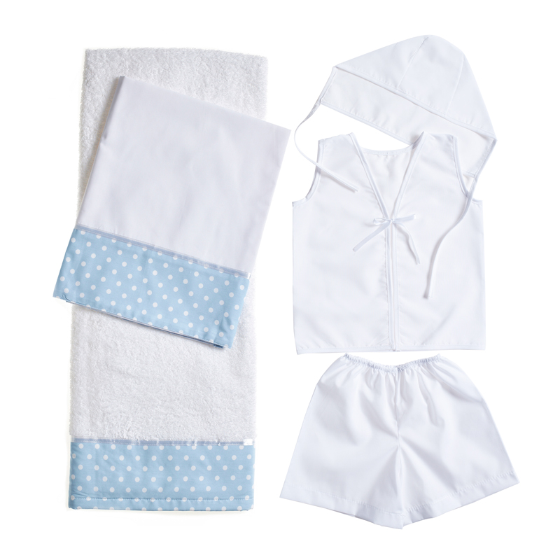 Λαδόπανα σετ για αγόρι σε λευκό χρώμα με πουά φάσα σε γαλάζιο ή λαχανί χρώμα. Παράδοση σε 5-10 εργάσιμες μέρες. Nuova vita Λ196
