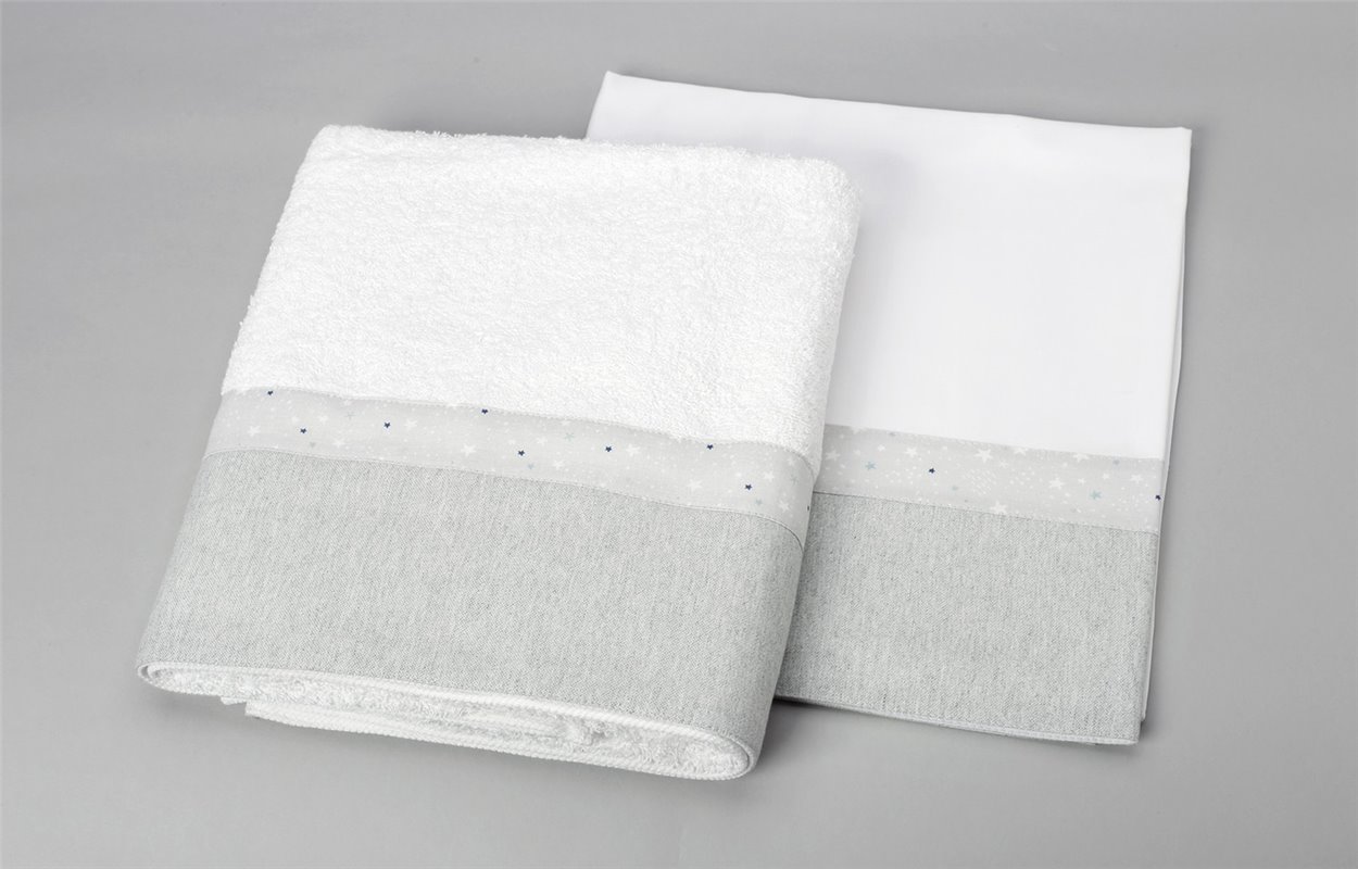 Άσπρο λαδόπανο με μεγάλη φάσα γκρι και μικρή φάσα με αστεράκια. Εταιρεία New Life 112719. Παράδοση σε 10-15 εργάσιμες μέρες.