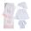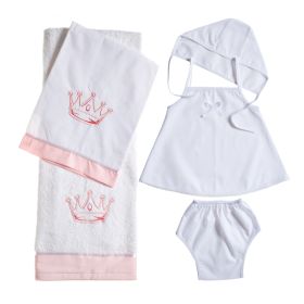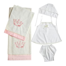 Λαδόπανα σετ για κορίτσι σε λευκό ή εκρού χρώμα με ροζ κεντημένη κορώνα. Παράδοση σε 5-10 εργάσιμες μέρες. Το σετ περιλαμβάνει πετσέτα, λαδόπανο και εσώρουχα.