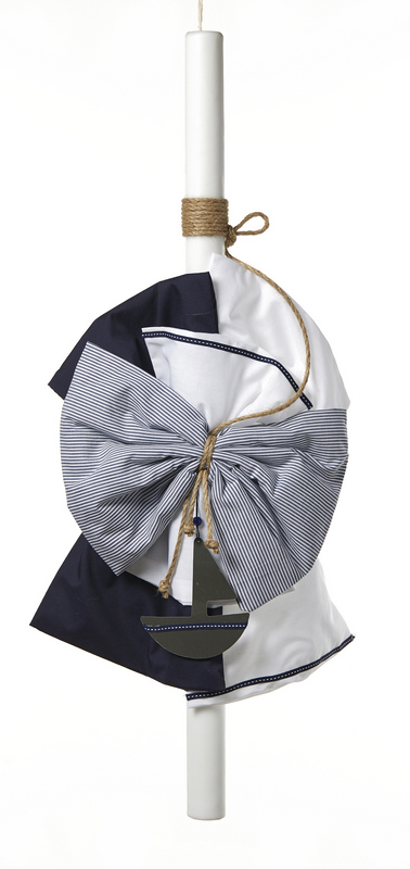 Λαμπάδα βάπτισης καράβι λευκό-μπλε-ριγέ χρώμα. Παράδοση σε 5-10 εργάσιμες μέρες. Nuova vita ΚΛ60