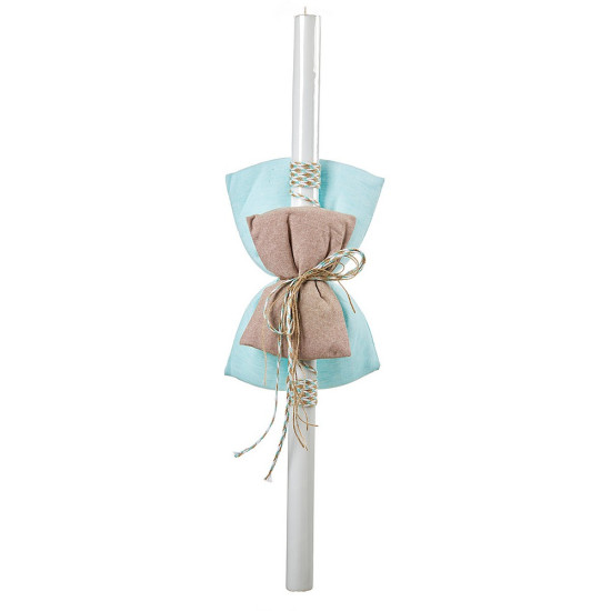 Λαμπάδα αποτελούμενη απο δύο φιόγκους, μπεζ και σιελ και δέσιμο με κορδόνι.