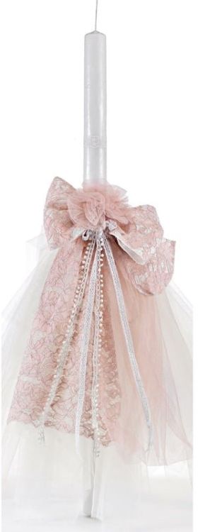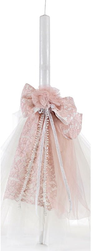 Λαμπάδα βάπτισης για κορίτσι με ροζ δαντέλα και τούλι. Παράδοση σε 15-20 εργάσιμες μέρες. BULA ΛΑΜ917.