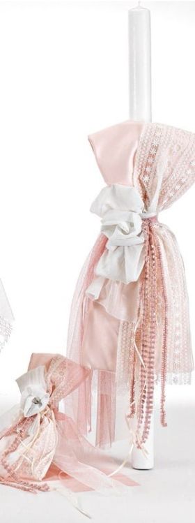 Λαμπάδα βάπτισης με δαντέλα και λουλούδι σε απαλό ροζ/λευκό χρώμα. Παράδοση σε 15-20 εργάσιμες μέρες. BULA ΛΑΜ929