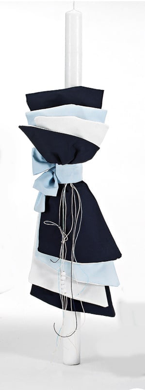 Λαμπάδα βάπτισης για αγόρι σε μπλε-λευκούς τόνους με φιόγκους. Παράδοση σε 15-20 εργάσιμες μέρες. BULA ΛΑΜ931.