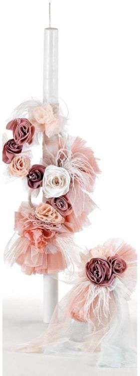 Λαμπάδα βάπτισης για κορίτσι με λουλούδια και φτερά σε ροζ χρωματισμούς. Παράδοση σε 15-20 εργάσιμες μέρες. BULA ΛΑΜ951.