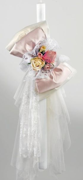 Λαμπάδα βάπτισης με λουλούδια και σατέν φιόγκους. Παράδοση σε 15-20 εργάσιμες μέρες. BULA ΛΑΜ857