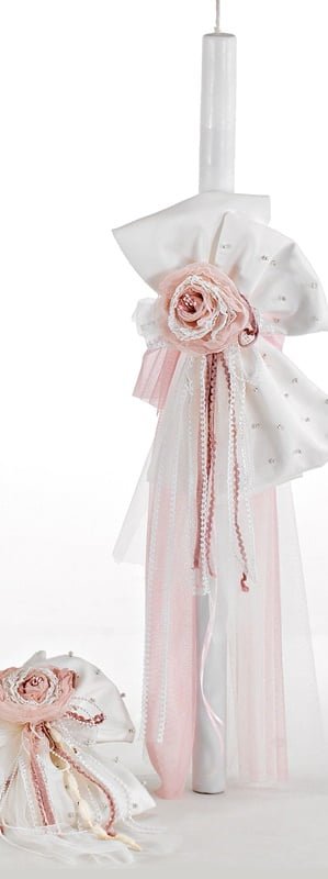 Λαμπάδα βάπτισης για κορίτσι με ροζ απαλό-λευκό τούλι και στρας. Παράδοση σε 15-20 εργάσιμες μέρες. BULA ΛΑΜ959.
