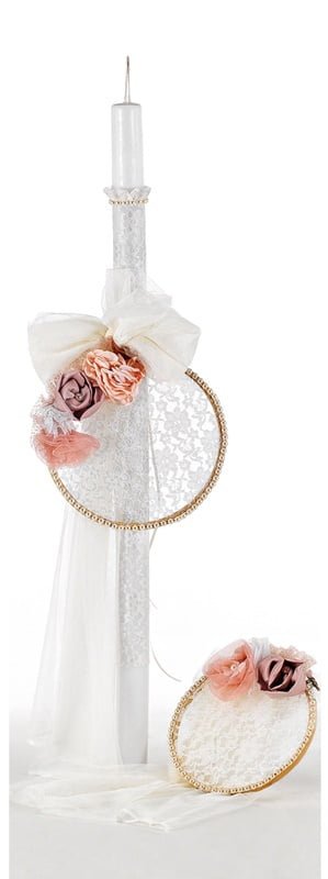 Λαμπάδα βάπτισης για κορίτσι ρομαντική με στεφάνι δαντέλα και λουλούδια. Παράδοση σε 15-20 εργάσιμες μέρες. BULA ΛΑΜ962.