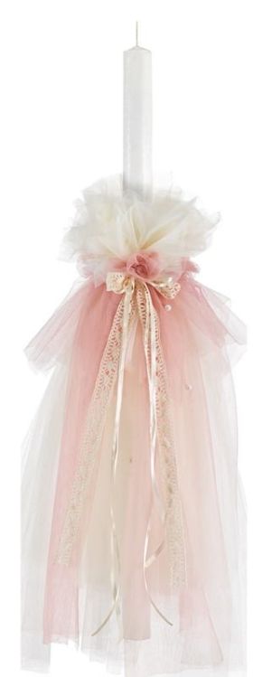 Λαμπάδα βάπτισης με τούλι και κορδέλες σε εκρού/ροζ τόνους. Παράδοση σε 15-20 εργάσιμες μέρες. BULA ΛΑΜ874