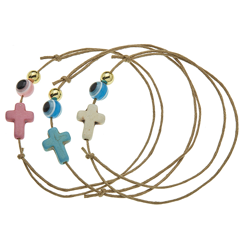 Μαρτυρικά βάπτισης βραχιόλι με σταυρό και χάντρα ματάκι 50τμχ. Παράδοση σε 3-8 εργάσιμες μέρες.