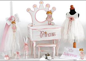 Σετ βάπτισης για κορίτσι με θέμα princess. Το σετ περιλαμβάνει κουτί-μπουντουάρ, λαμπάδα, λαδόπανα και λαδοσέτ.Παράδοση σε 15-25 εργάσιμες μέρες. K1822