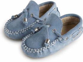 Βαπτιστικά δερμάτινα μοκασίνια σε σιέλ χρώμα με σουέντ υφή και διακοσμητικό κορδόνι. Παράδοση σε 5 εργάσιμες μέρες. Babywalker Bw.4139.