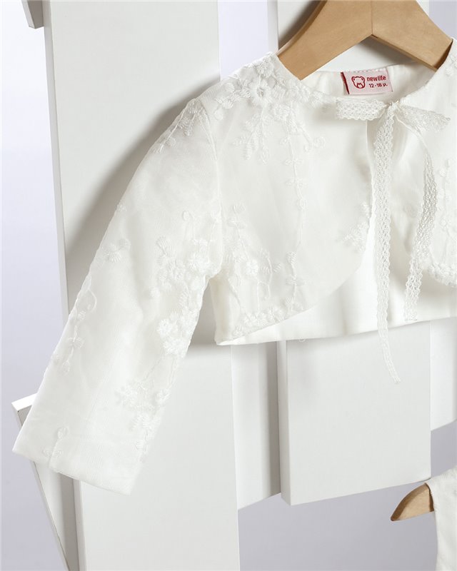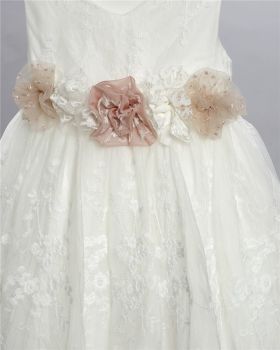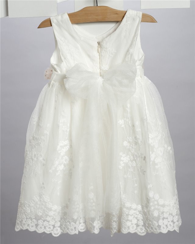 Εκρού φόρεμα απο δαντέλα στολισμένο με τούλινη ζώνη και δαντελένια λουλούδια. Εταιρεία New Life 2720-2. Παράδοση σε 10-15 εργάσιμες μέρες.