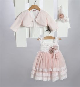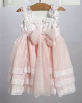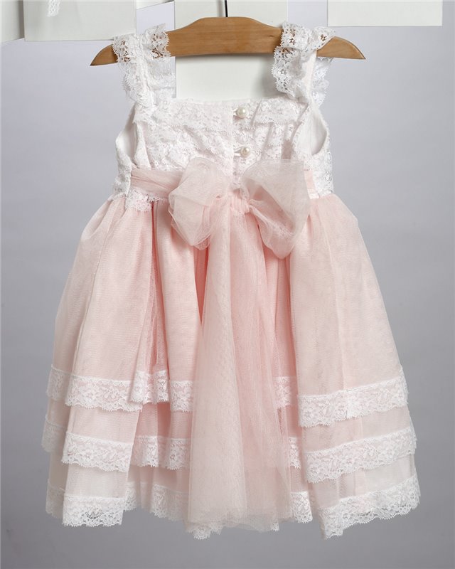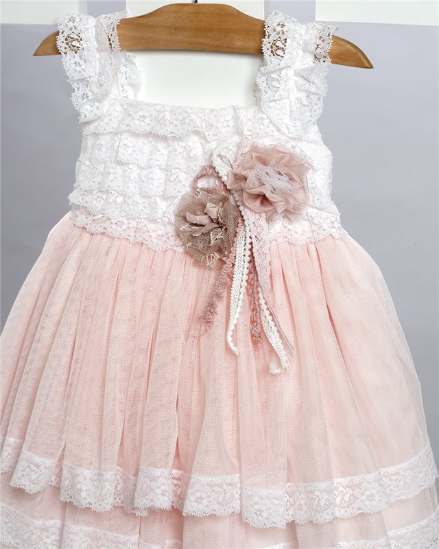 Ροζ φόρεμα απο τούλι και δαντέλα, στολισμένο με τούλινα λουλούδια και κορδελάκια. Εταιρεία New Life 2718-4. Παράδοση σε 10-15 εργάσιμες μέρες.